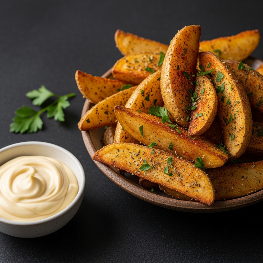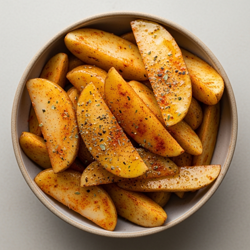 This recipe doesn’t require pre-soaking the potato wedges before air frying. However, if you have time to soak the potatoes in cold water for about 30 minutes before seasoning and “frying,” the recipe might yield even crispier results.