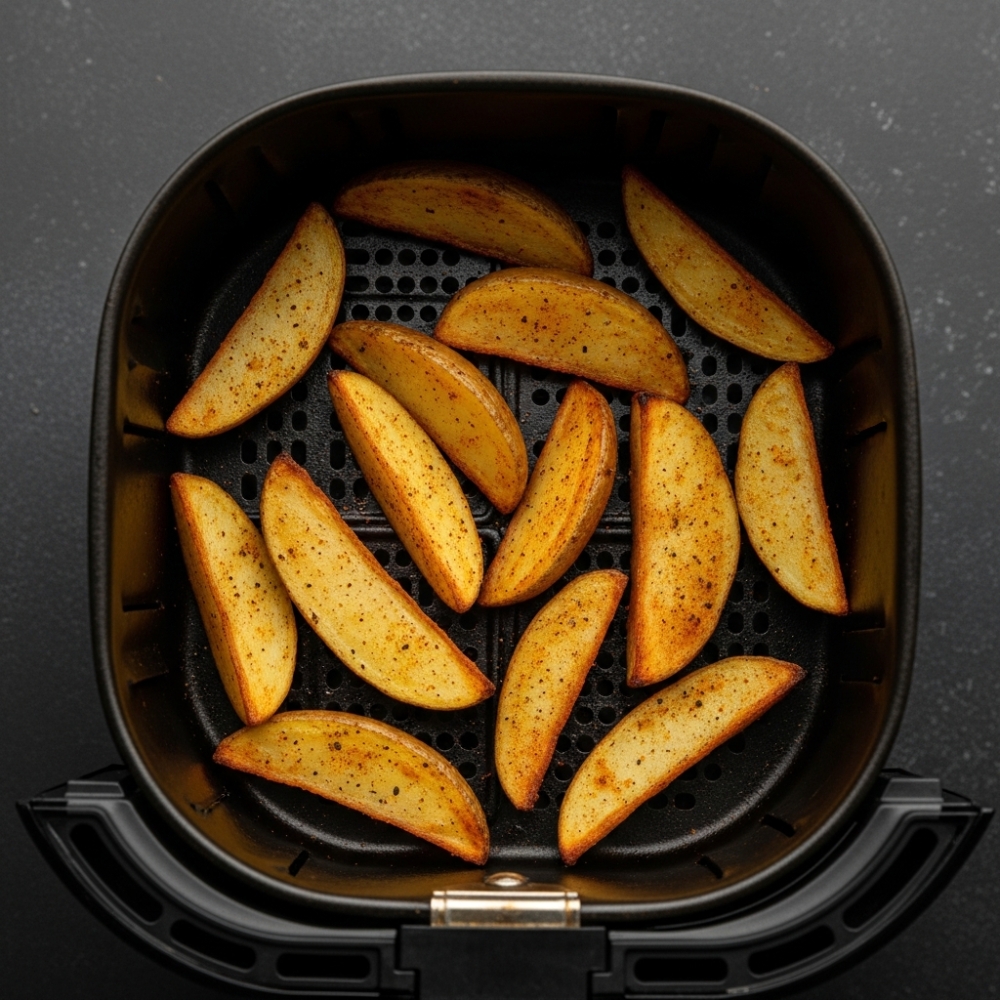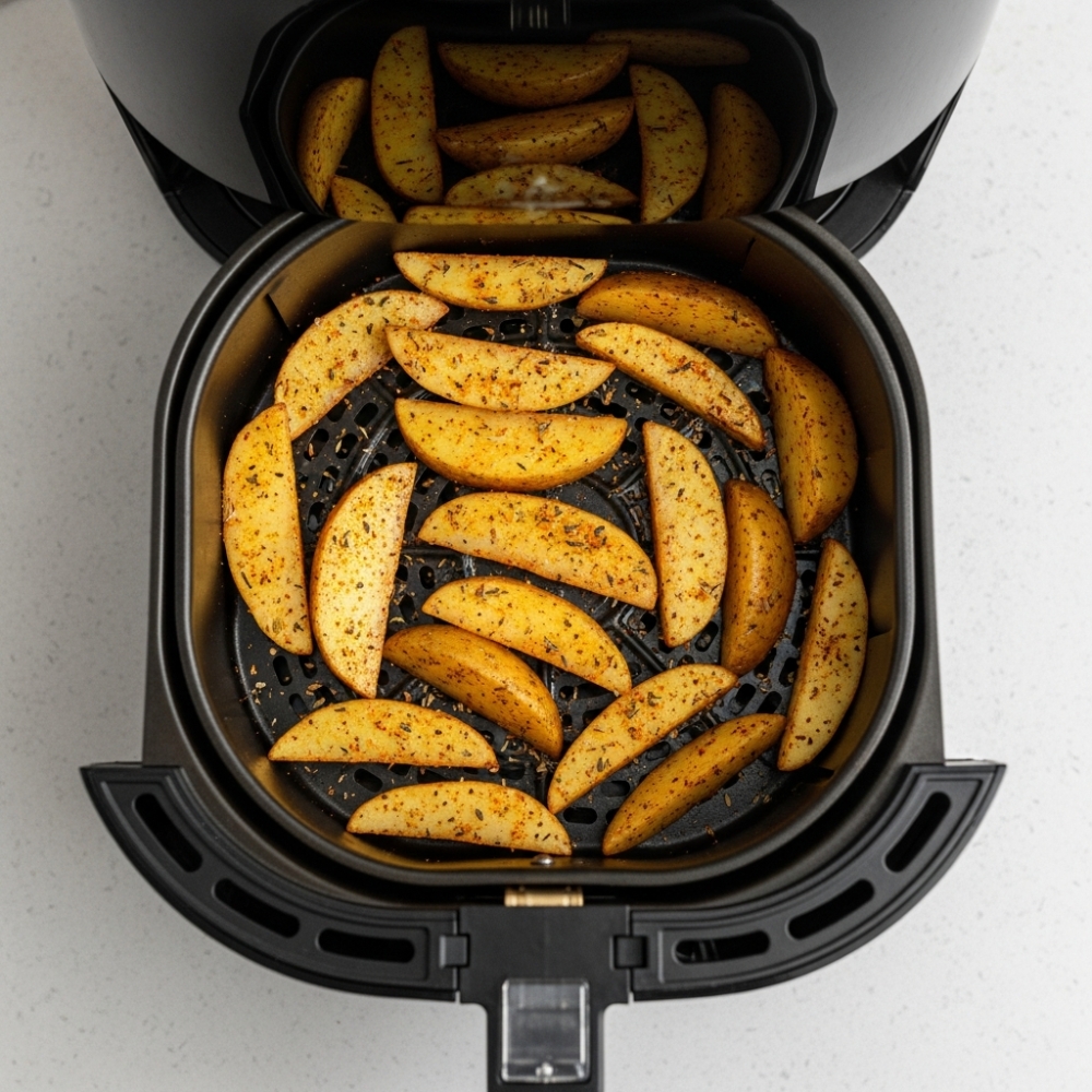 Arrange half the wedges in the air fryer basket in a single layer; cook for 10 minutes.