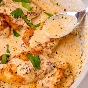 • Garlic & Feta Mashed Potatoes: For an extra-indulgent dish, spoon the chicken and sauce on top of the potatoes.