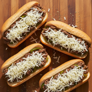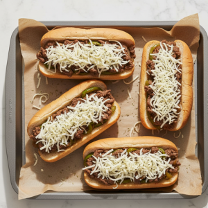 Step6 Divide beef mixture into buns. Top with shredded cheese and sprinkle with oregano.