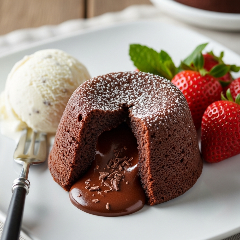 Serve your chocolate lava cake with a scoop of eggless vanilla ice cream, a dollop of whipped cream, or dusted with powdered sugar and fresh berries for a delightful contrast.
